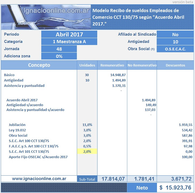 Ignacio Online Comercio Enero 2024. 4,5% desde julio, se liquida ahora. Calculadora de sueldos empleados de comercio ignacio online simular sueldos de comercio con adicionales y aguinaldo escalas actualizadas.